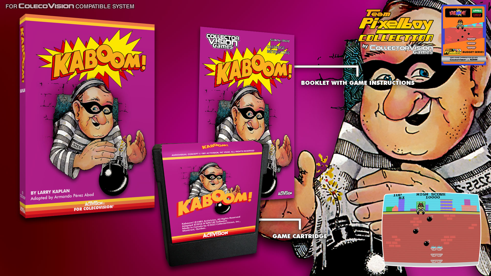Kaboom! was published in 1981 by Activision for the Atari VCS (renamed to the Atari 2600 in 1982). It was programmed by Larry Kaplan, and David Crane coded the overlaid sprites.