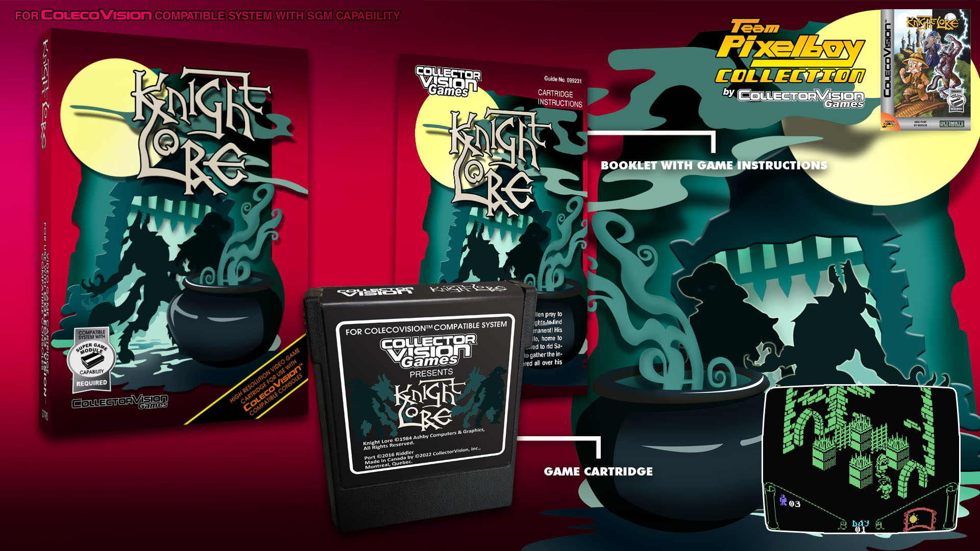 As Saberman, you must explore Knight Lore castle, collect the required ingredients and bring them to the wizard. This wouldn't be so hard if the castle wasn't filled with traps and dangerous creatures that kill with a mere touch! You will need acute skills and intellect to stay out of harm's way and solve some intricate puzzles. Without your help, Saberman is doomed!