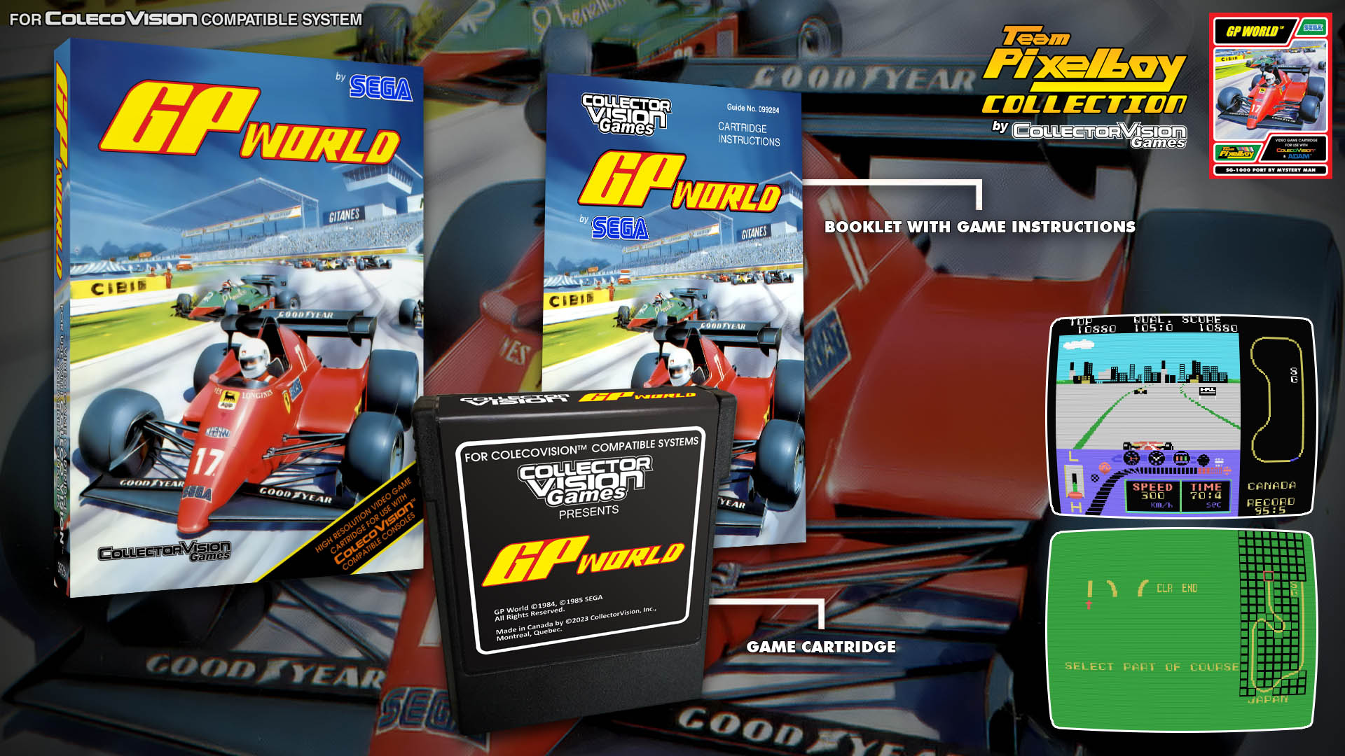 I talked to Mystery Man about this, and I suggested that he could port 9 different SG-1000 games to the ColecoVision, and that these ports could be sold exclusively via the AtariAge Store, using the same kind of two-piece boxes that were used for the budget series. After reaching an agreement with Albert over at AtariAge, Mystery Man performed the ports, including this port of GP World.