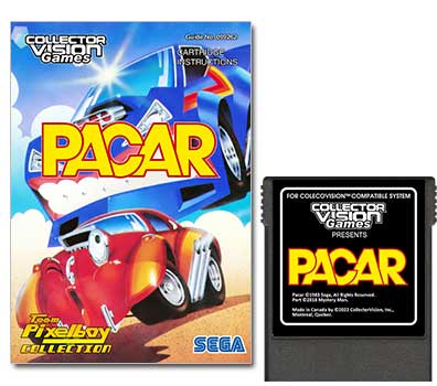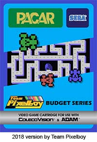 After the publishing deal for Yars' Revenge fell through (because the programmer didn't finish the software in a reasonable amount of time) I asked Mystery Man if he would be willing to help by porting the SG-1000 game Pacar to the ColecoVision, and he graciously accepted. This game had previously been attached to CollectorVision, but they let me publish Pacar in exchange for letting them publish Yars' Revenge.