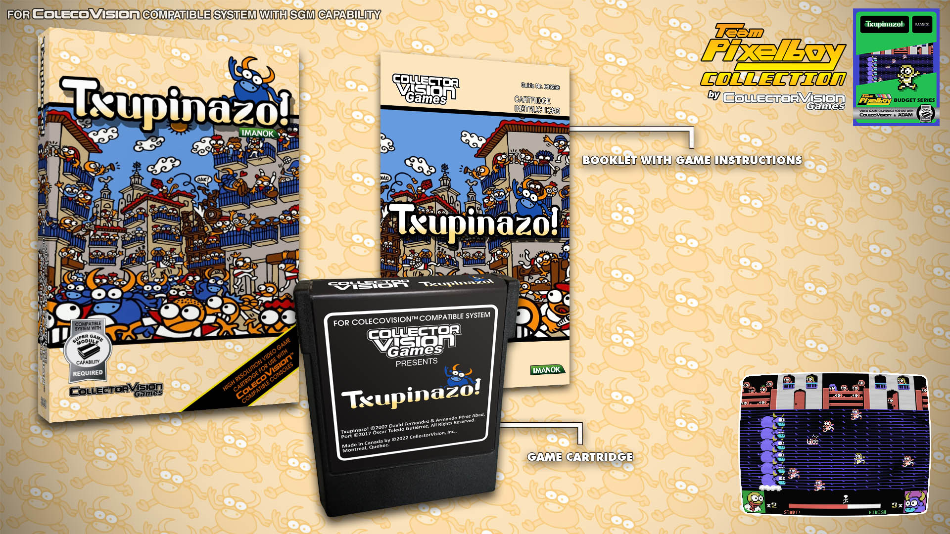 When I told Armando Pérez Abad about my budget game project, he contacted a few of his friends in the MSX homebrew community on my behalf, one of which was David Fernandez (a.k.a. Imanok). David graciously offered to let me publish ports of many of his MSX homebrew games to help Óscar. Óscar himself ported Txupinazo! to ColecoVision.
