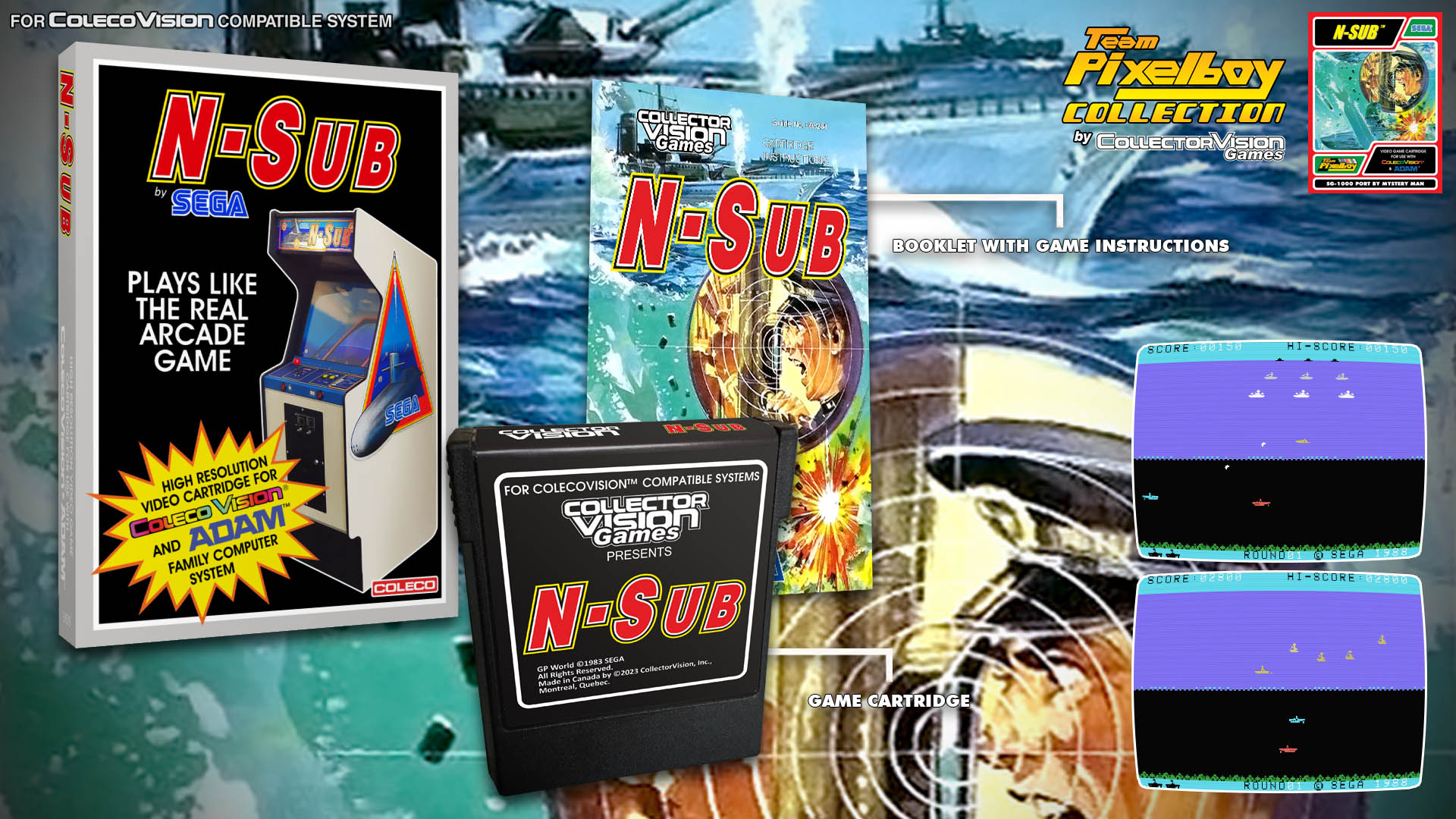 I talked to Mystery Man about this, and I suggested that he could port 9 different SG-1000 games to the ColecoVision, and that these ports could be sold exclusively via the AtariAge Store, using the same kind of two-piece boxes that were used for the budget series. After reaching an agreement with Albert over at AtariAge, Mystery Man performed the ports, including this port of N-Sub.